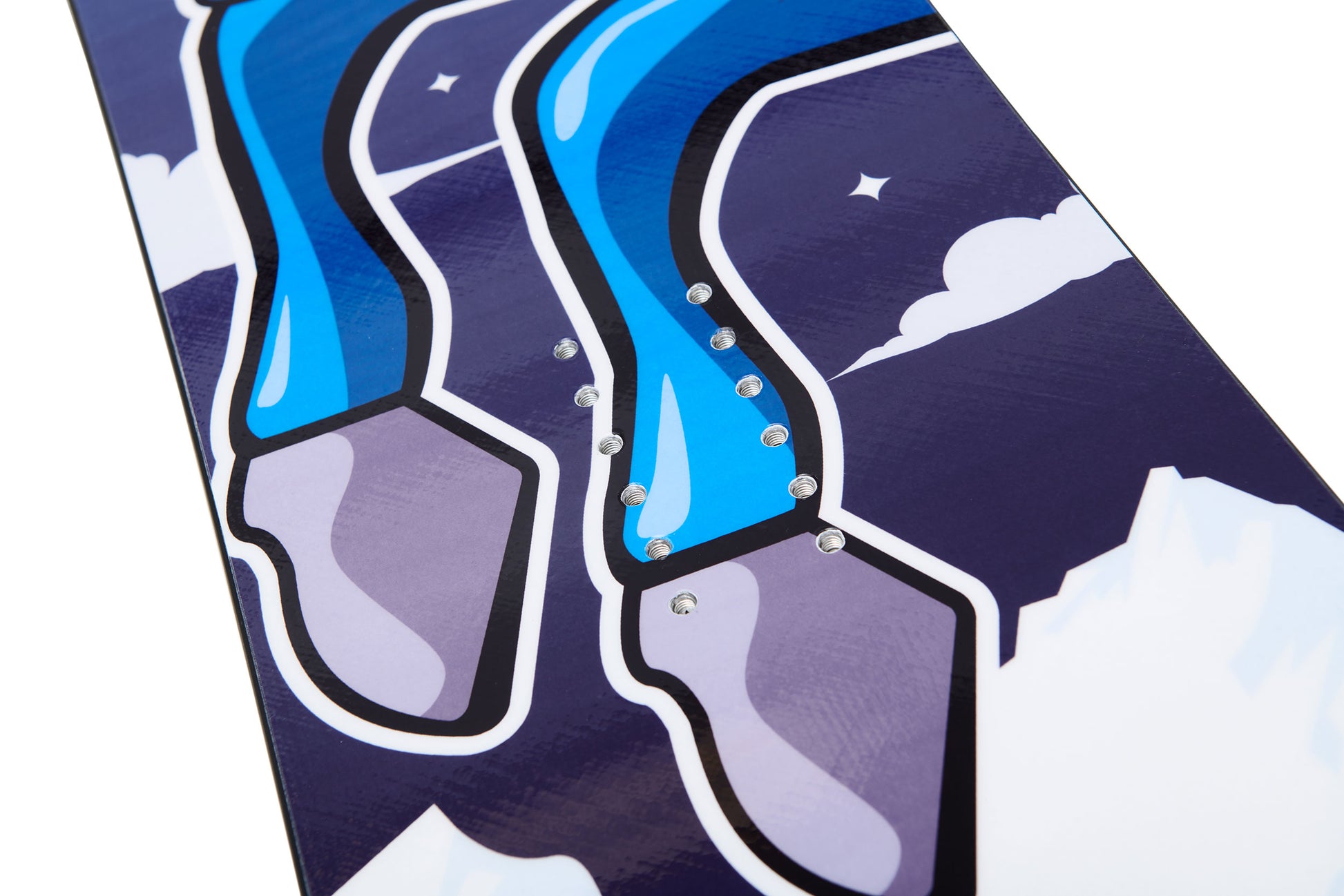 A true twin-tip fot that centered stance so you easily can take control in the park. We also added some carbon rods at the tip and tail so it gets stronger and also gives the board a lot more pop.